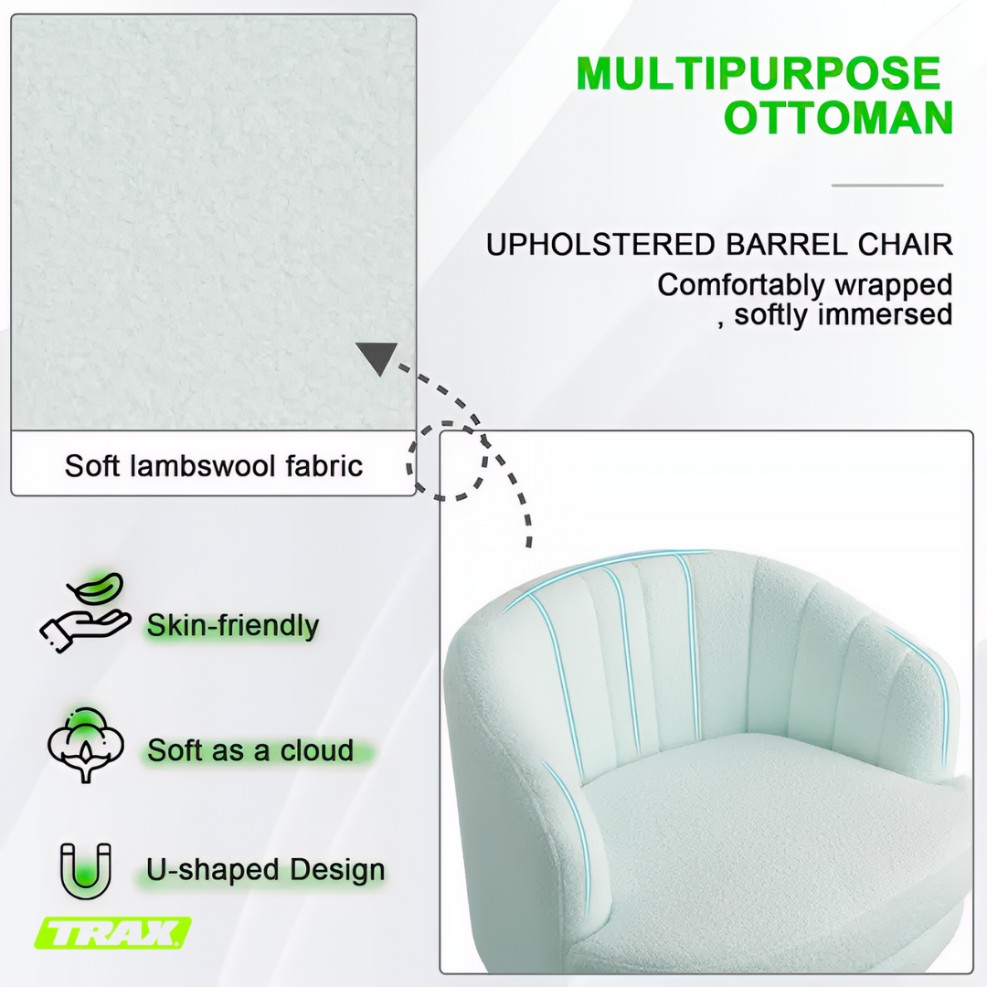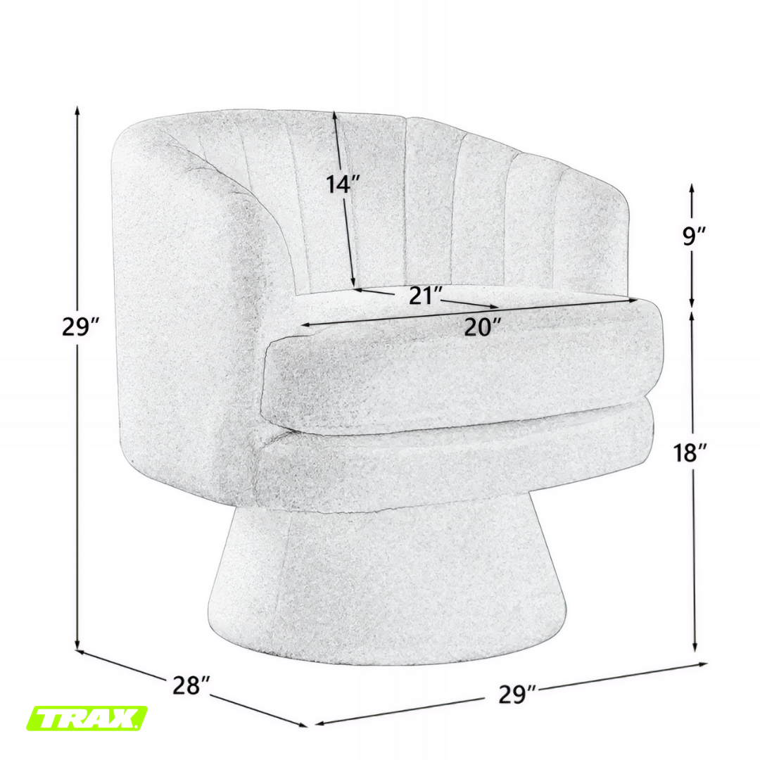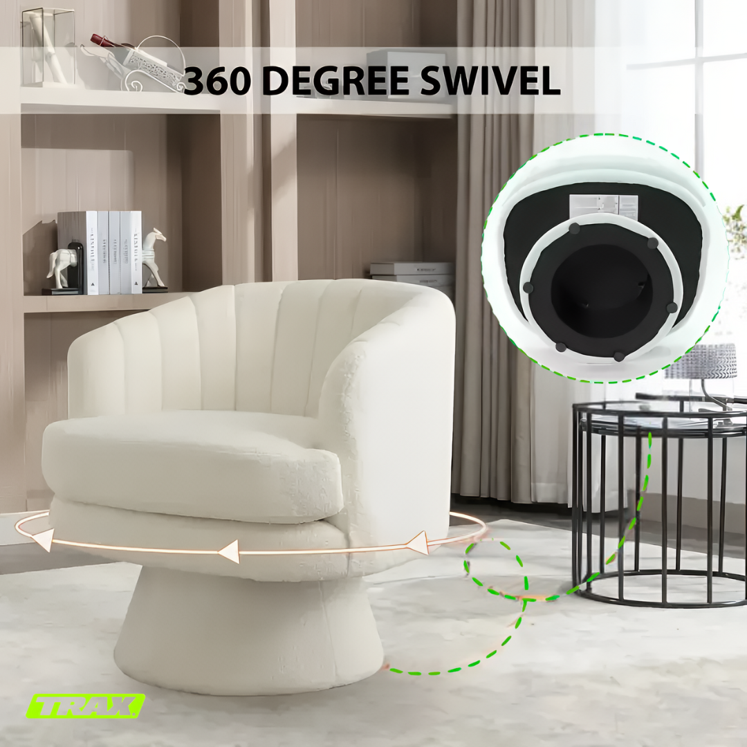 I absolutely love the TRAX Bloom chairs! They instantly elevated my lounge area with their soft, luxurious lambswool texture and modern rounded design. The 360° swivel is super smooth and convenient, letting me turn easily without getting up. They’re incredibly comfortable — perfect for relaxing with coffee or reading by the window. The quality feels premium, and the neutral beige tone blends beautifully with any décor. Truly worth every penny!