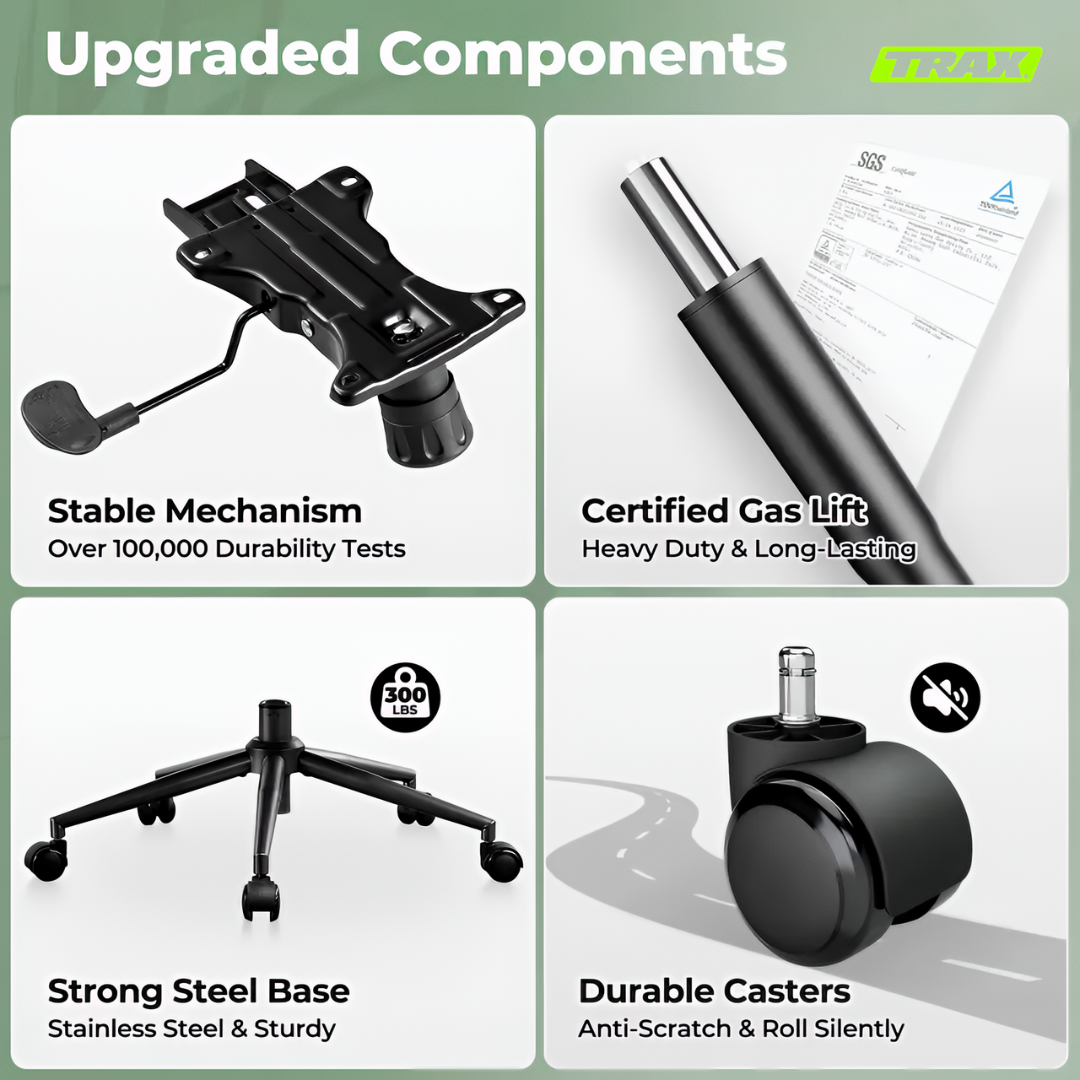 The TRAX EliteMax completely changed how I work from home. The seat is wide, supportive, and incredibly soft — perfect for long hours at my desk. It feels sturdy yet elegant, and the faux leather finish gives it a premium touch. Assembly was simple, and the comfort level is unmatched. Highly recommend it to anyone who values both style and ergonomics!