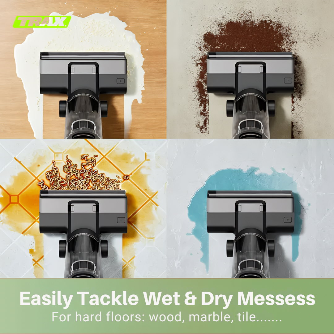 Absolutely. The TRAX GlidePro™ seamlessly transitions from vacuuming dry debris like dust and crumbs to mopping up spills and sticky messes. Its dual water tank system keeps clean and dirty water separate, ensuring hygienic cleaning every time.