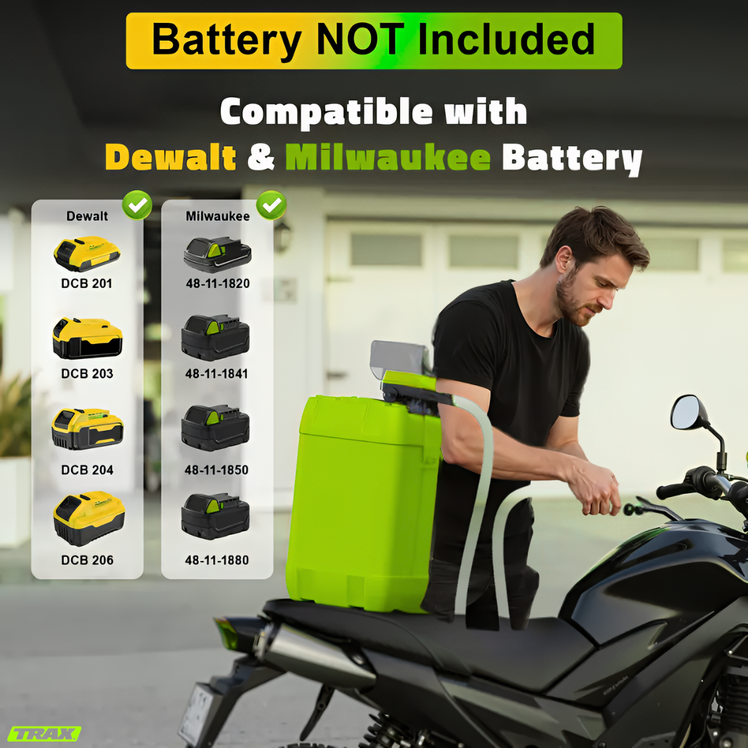 Absolutely. Powered by widely available DeWalt 20V and Milwaukee 18V batteries, the TRAX PowerPump™ is fully cordless and portable. Whether you’re on a job site, at the farm, or out camping, it provides a reliable and convenient fueling solution anywhere.