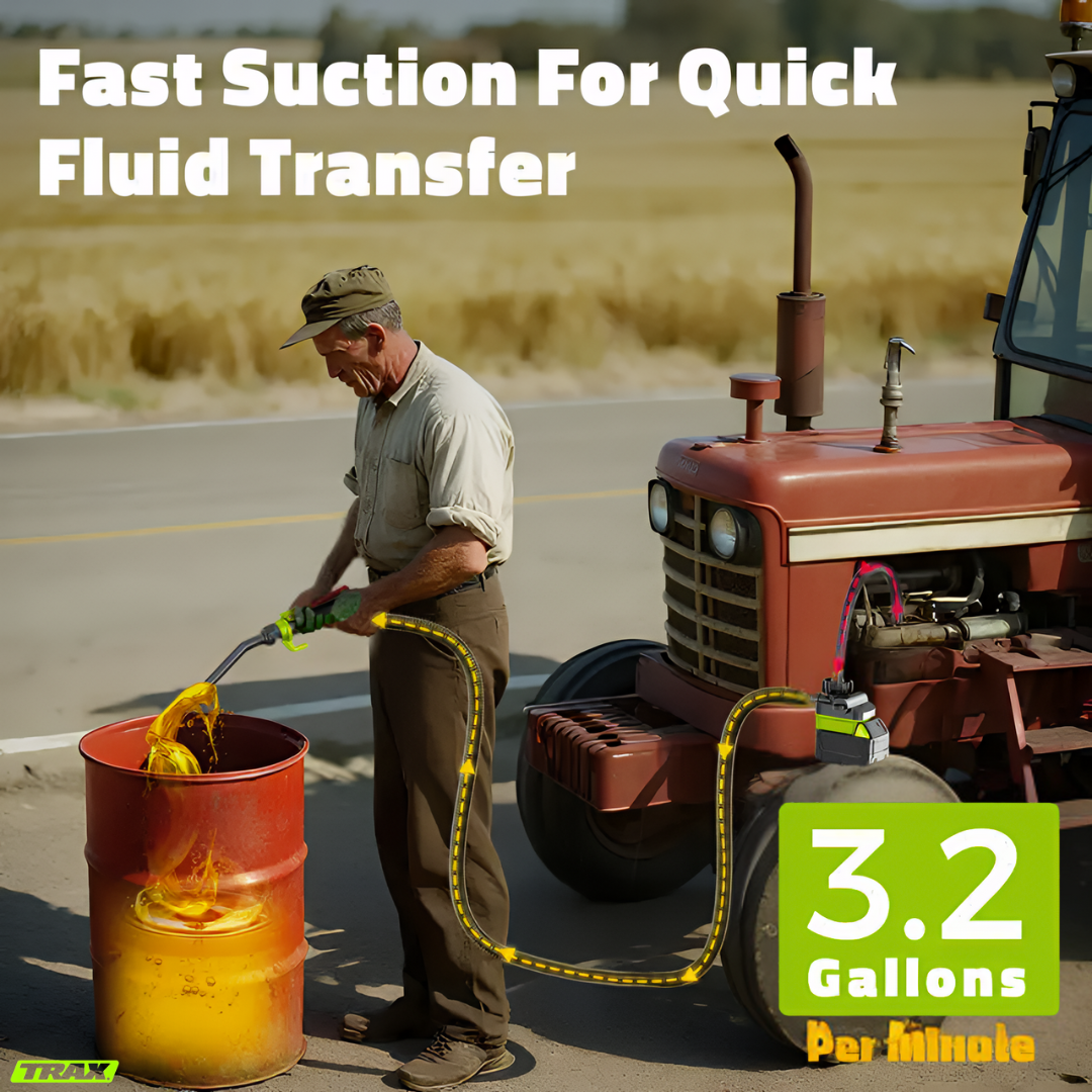 The TRAX PowerPump™ delivers up to 3.2 gallons per minute, ensuring fast transfers and reduced downtime. This high-performance output makes it ideal for quickly fueling equipment, vehicles, and outdoor machinery.